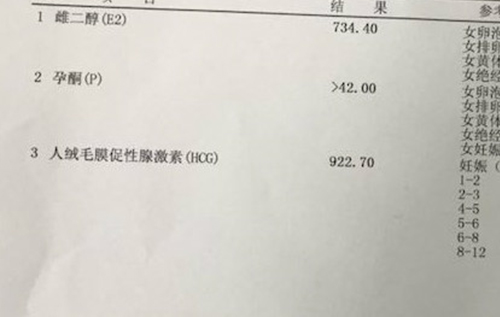 验孕结果: HCG值922.7